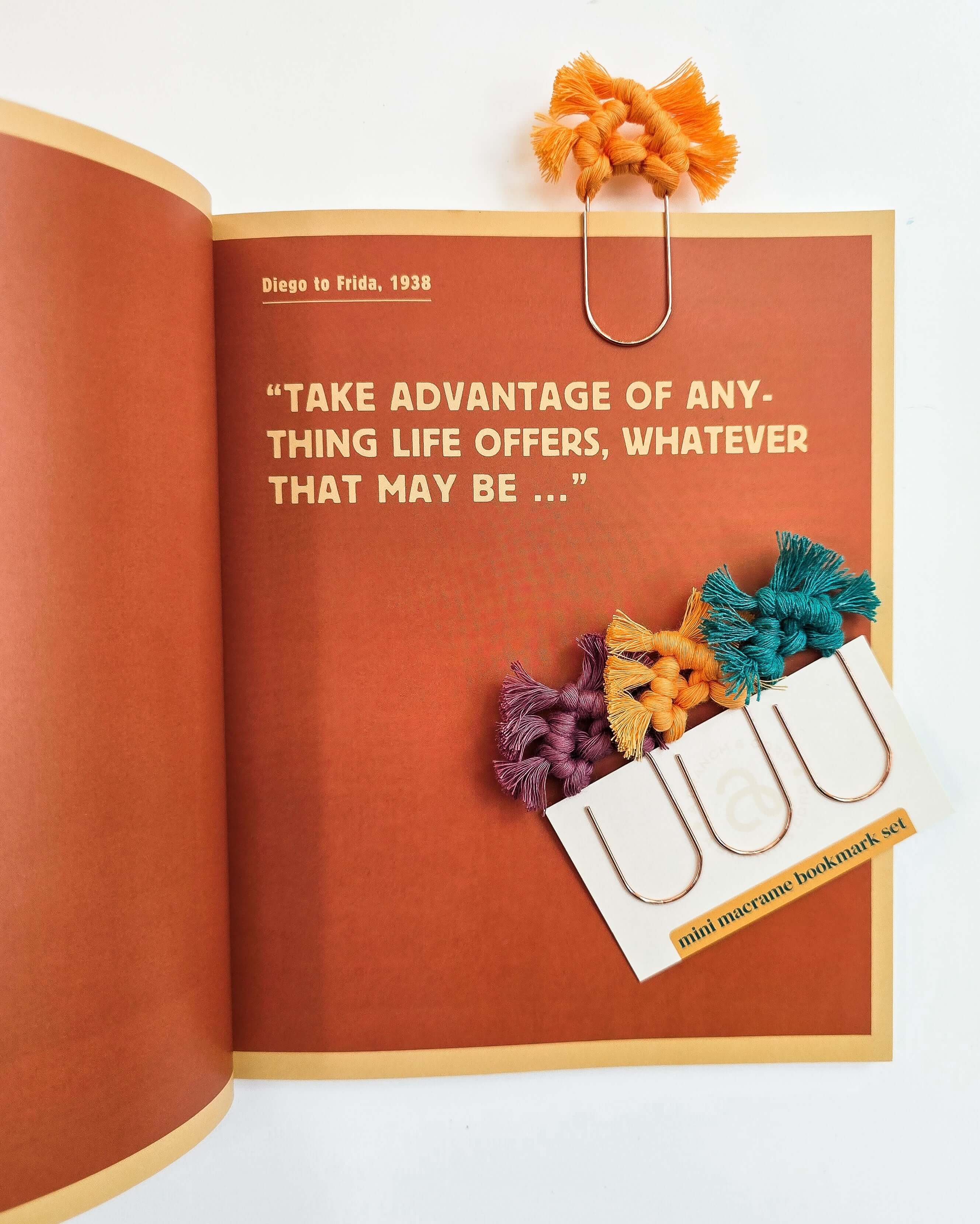 Includes 3 mini macrame bookmarks
