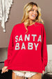 Embrace the holiday spirit with this festive "Santa Baby" lettering Christmas sweatshirt. Perfect for adding a touch of Christmas cheer to your winter wardrobe. The stylish design and cozy fabric make it a must-have for the holiday season. Spread joy and laughter wherever you go in this fun and playful sweatshirt. Makes a great gift for friends and family who love the Christmas season.