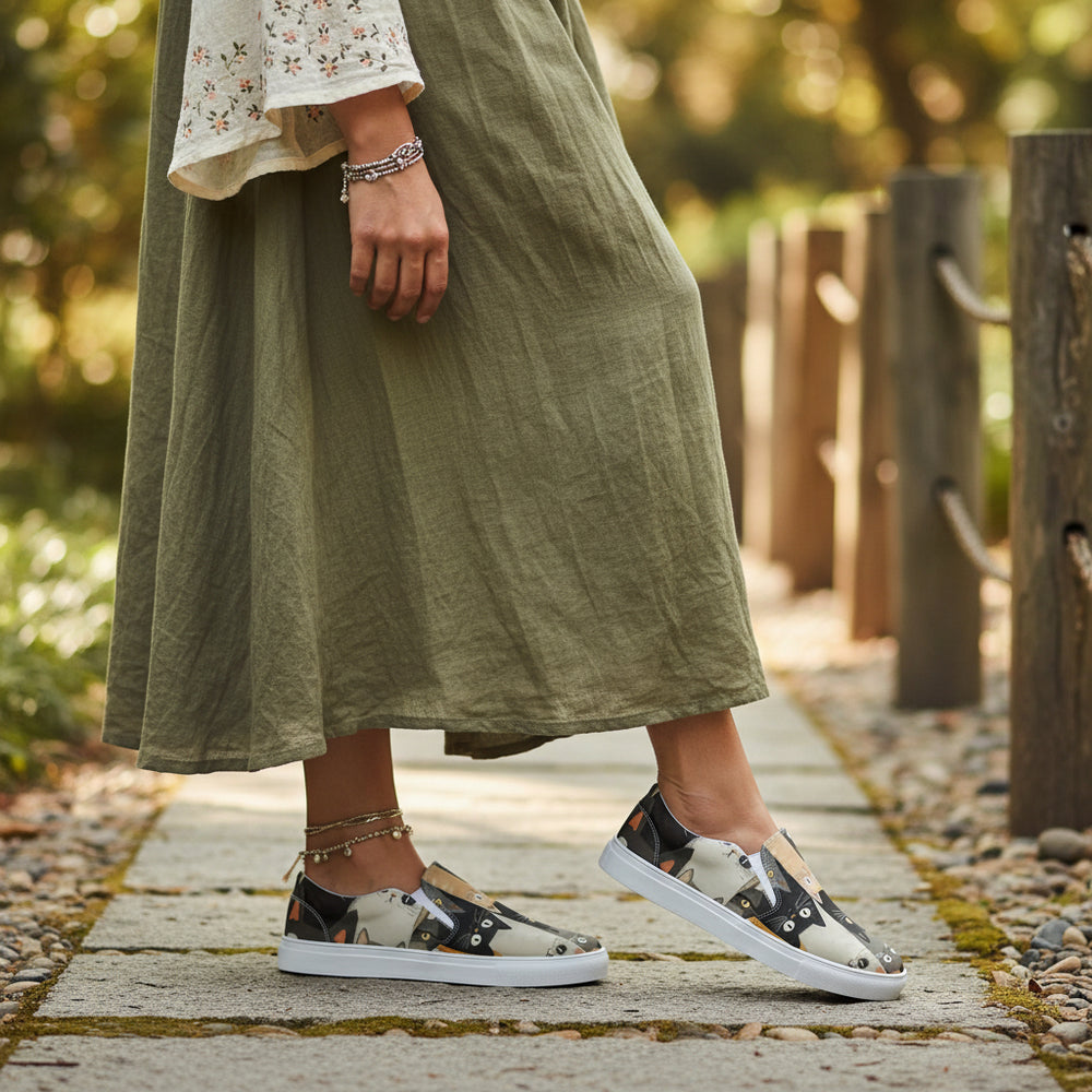 Step into purr-fection! 🐾 These charming slip-on canvas shoes are a true Cat Lover’s Dream — playfully covered in as many adorable cats as we could fit. From fluffy tabbies to sleek black cats, every pair is a tribute to your feline obsession.