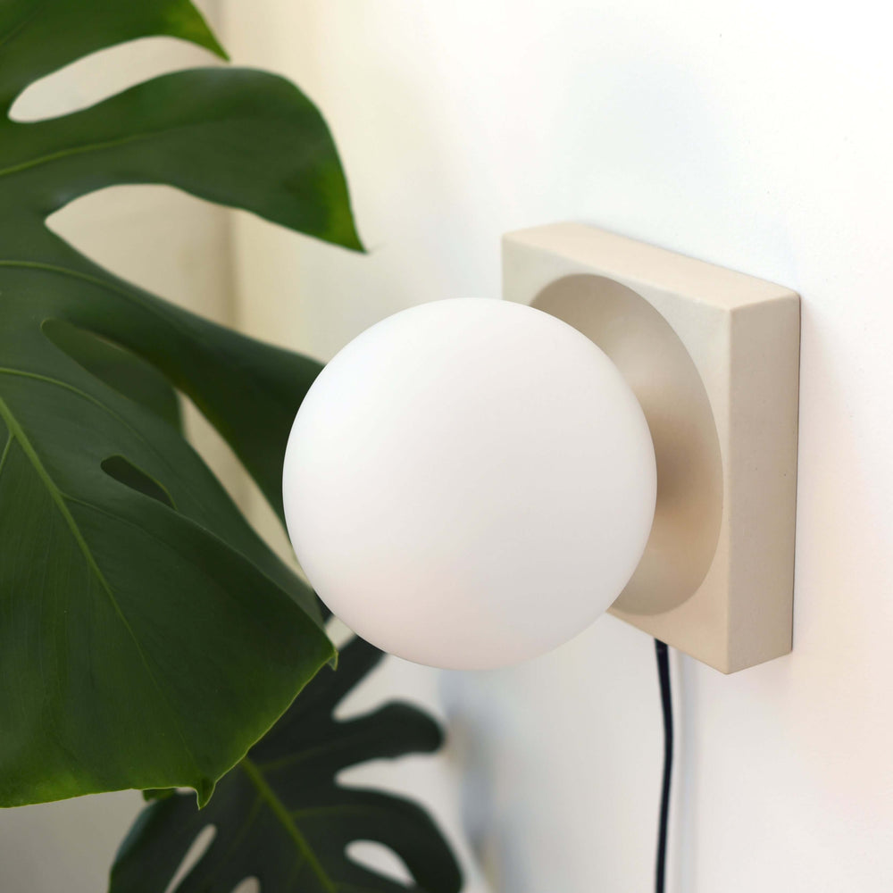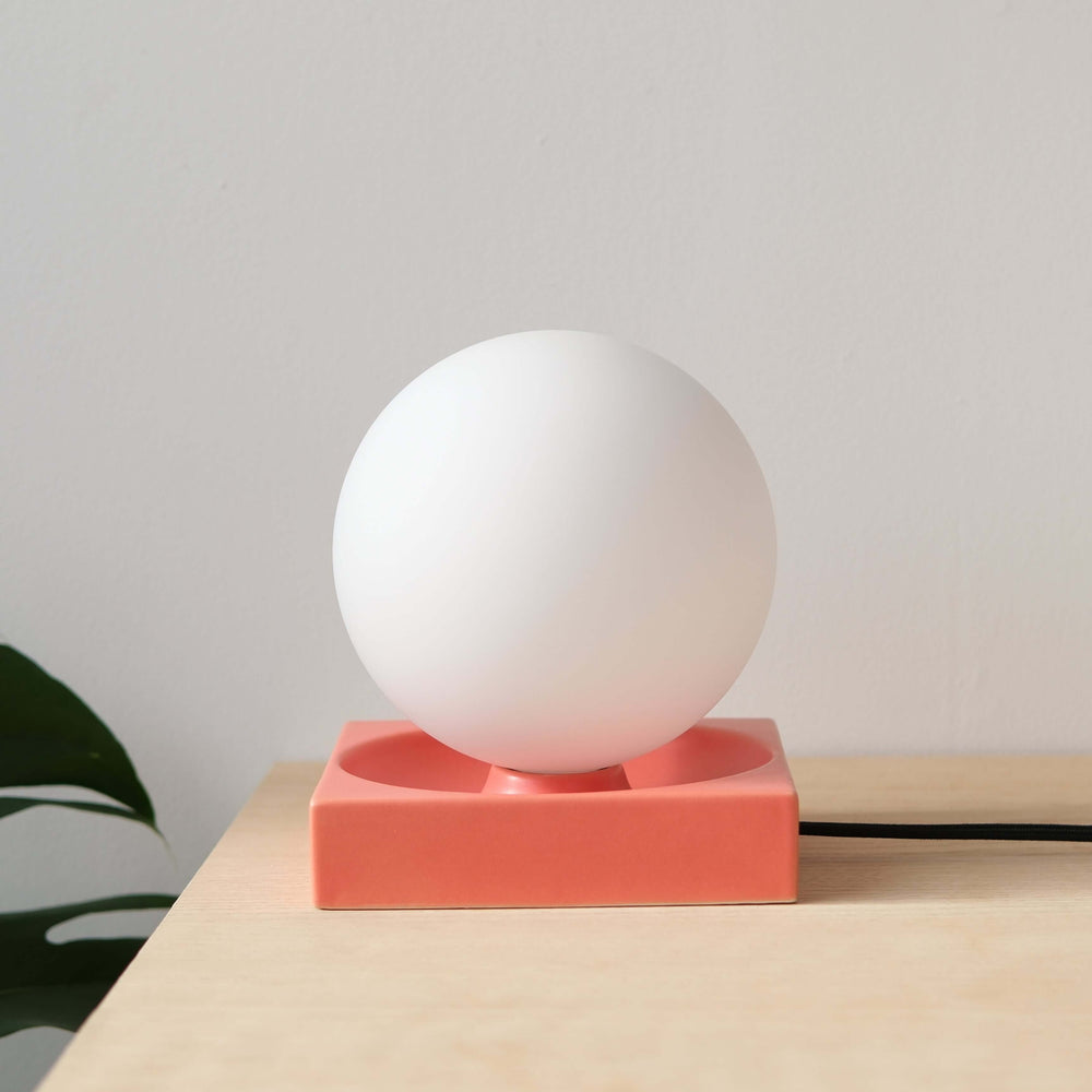 This dual purpose lamp works great as a table lamp or a sconce. When lit, the blown glass globe appears to float atop the handmade ceramic base. This item is made by hand in the Misewell ceramics studio.
