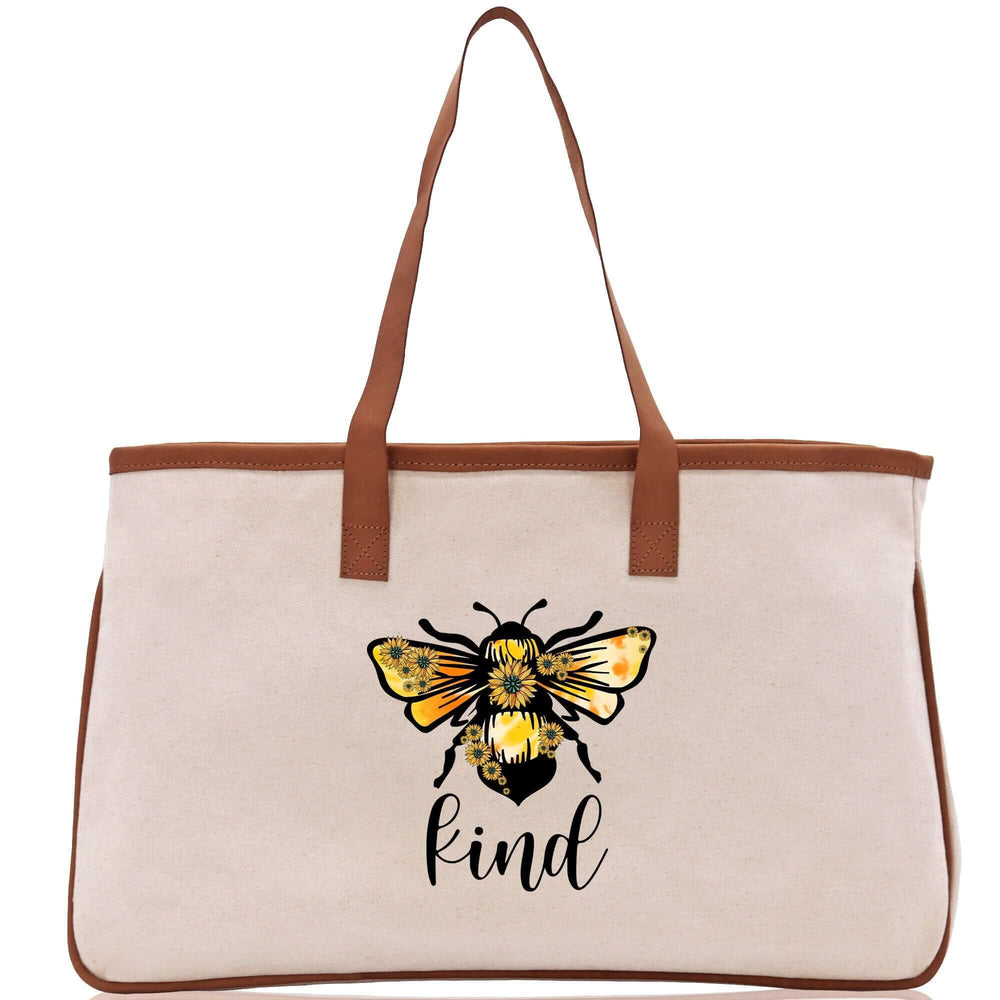 Eco-friendly cotton canvas weekender tote with "Kind" message - large travel bag perfect for weekend trips, gym, and sustainable fashion. This reusable and washable tote promotes kindness and eco-conscious living.