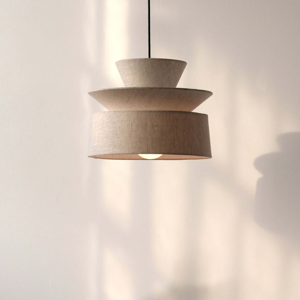 The Lag Lamp is a simple pendant lamp comprised of three transluscent layers. Each layer is made of unbleached, organic cotton to give warmth the otherwise modern aesthetic.