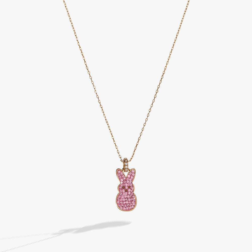 Celebrate everything sweet about springtime and Easter with this PEEPS® Pink Crystal Bunny Pendant Necklace, which features a pink pavé crystal PEEPS® bunny charm on an adjustable-length necklace chain. Wear it to welcome the season — or gift it to somebunny you love.