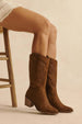 Pull on these western-inspired knee-high boots and step into timeless style. Intricate embroidered stitching details catch the light, while the pointed toe and stacked block heel deliver authentic cowboy charm with everyday wearability. The structured shaft holds its shape beautifully, and convenient side tabs make them effortless to slip on and off. Perfect for anyone seeking that classic western aesthetic without compromising on comfort or practicality.