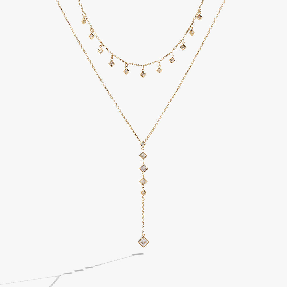 Feel like royalty in this Two-Layered Princess Cut Crystal Necklace, which features two necklaces on one adjustable-length clasp. The shorter layer has smaller princess-cut crystal charms on a textured chain, and the longer layer has larger princess-cut crystals inline on a textured lariat chain. It’s the kind of sparkle you can wear any day — and because it’s gold-tone stainless steel, it’s durable and scratch-resistant so you can wear it on repeat.
